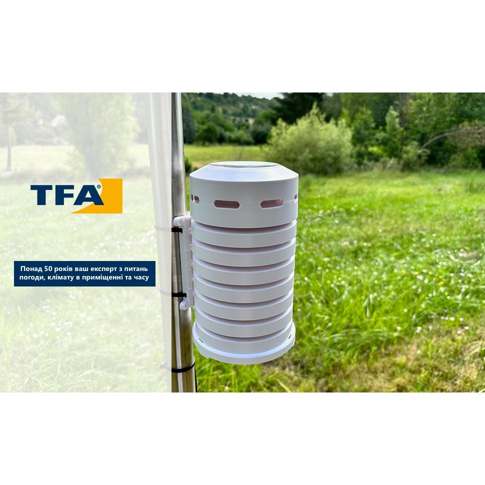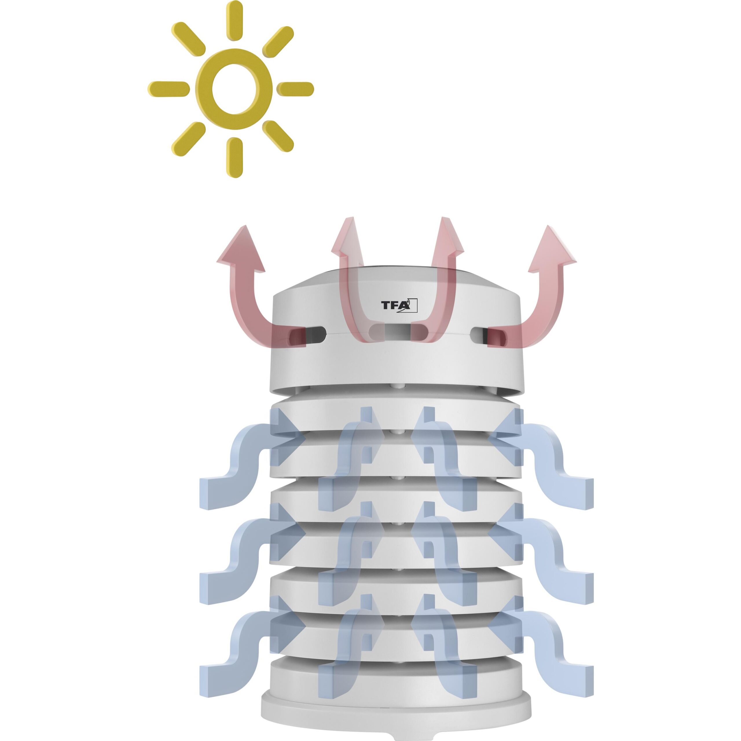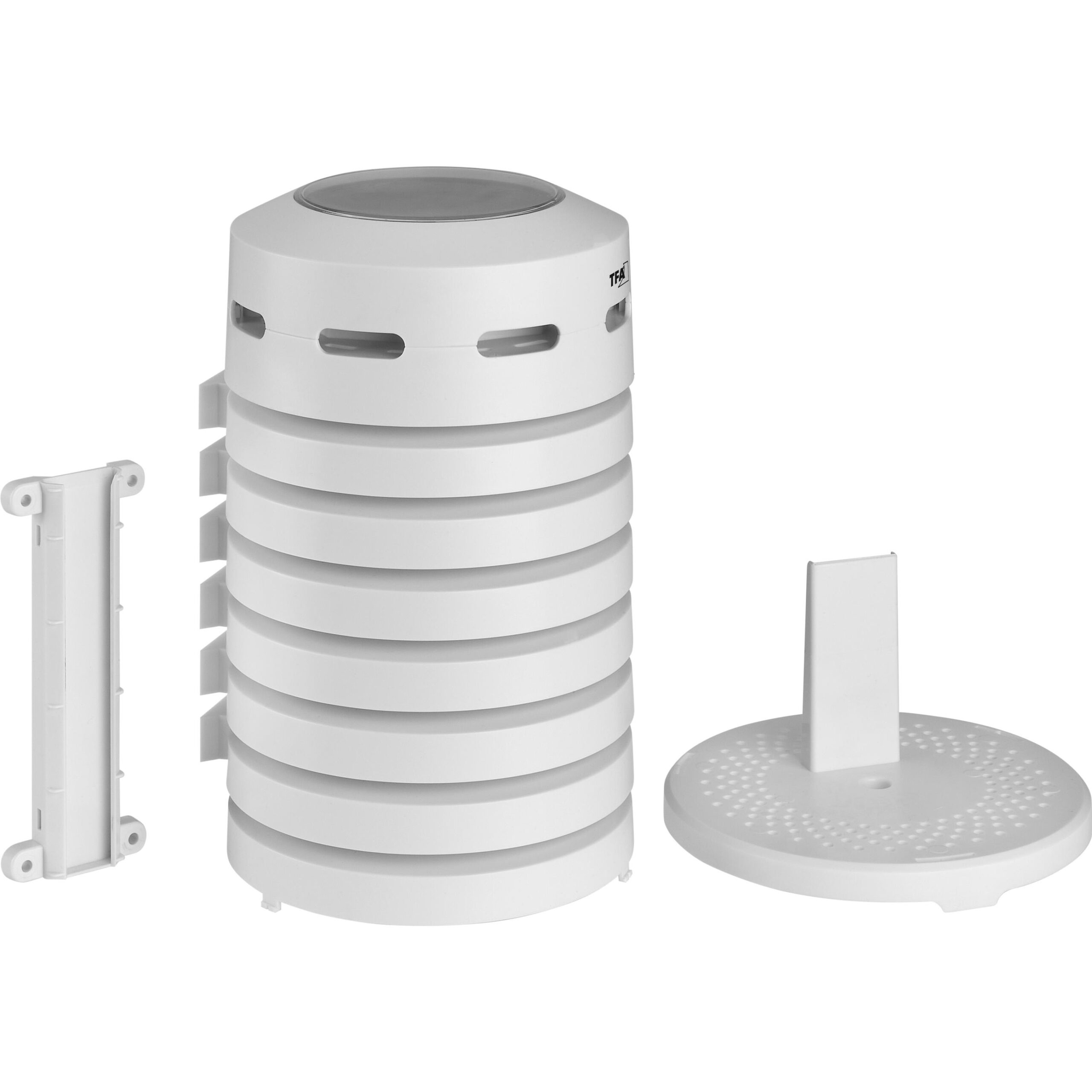 Этот практичный колпак с зарегистрированным дизайном TFA не только защищает ваш датчик температуры или термо-гигро датчик от солнца и дождя, но и благодаря встроенному вентилятору обеспечивает точные показания даже под прямыми солнечными лучами.